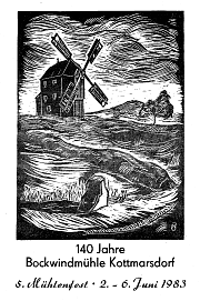 Die Kottmarsdorfer Bockwindmühle wird heute als technisches Denkmal gepflegt und ist seit längerer Zeit kultureller Mittelpunkt des Ortes. Die Abbildung zeigt das Deckblatt des Festprogrammes zum Mühlenfest im Jahre 1983.